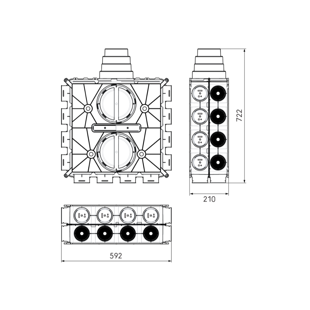 Air Excellent distribution box to which all Air Excellent duct types can be connected.