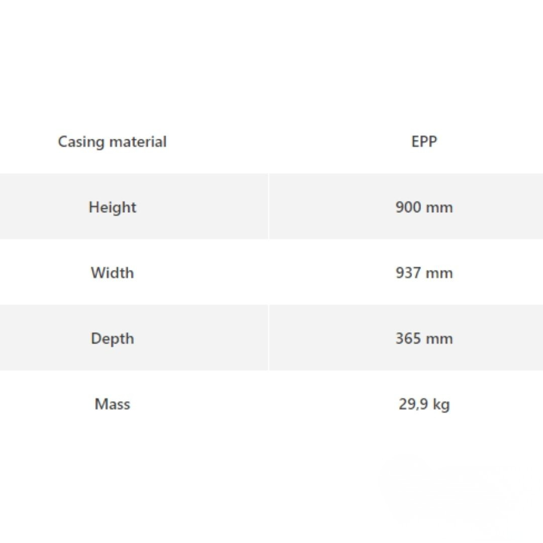 * Casing made entirely of 50 mm thick EPP - lightweight, durable and free of thermal bridges